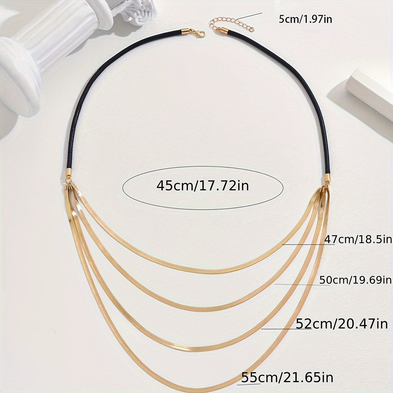 ✨Elevate Your Style with Luxury!✨🌟 What it is - Discover the chic and versatile Lxalry 14K Gold Layered Snake Chain Necklace. This stunning 4-layer necklace combines black leather and gold-tone accents, making it an exquisite addition to your daily wardrobe. Crafted with an electroplated finish, it's tarnish-resistant and hypoallergenic for all-day wear.❤️ Why you need it - This necklace solves your outfit dilemmas by adding a touch of elegance and style to any look:- Fits easily with sweaters and casual outfits for daily wear.- Hypoallergenic materials ensure comfort for sensitive skin.- Sustainable fashion made from 100% recycled materials, perfect for eco-conscious consumers.🌈 Why you’ll love it - Here’s why this necklace stands out:- Unique multi-layer design creates an eye-catching silhouette.- Handmade craftsmanship guarantees top-notch quality.- Ideal gift for various occasions, from birthdays to anniversaries.💎 How to use it - Drape the necklace over your neck, and let the layers cascade beautifully. Pair it with a simple top or a cozy sweater for a stylish look that effortlessly transitions from day to night.🌟 Satisfaction Guaranteed - Treat yourself or delight a loved one with this exquisite necklace. Order now and experience the perfect blend of style, quality, and sustainability!