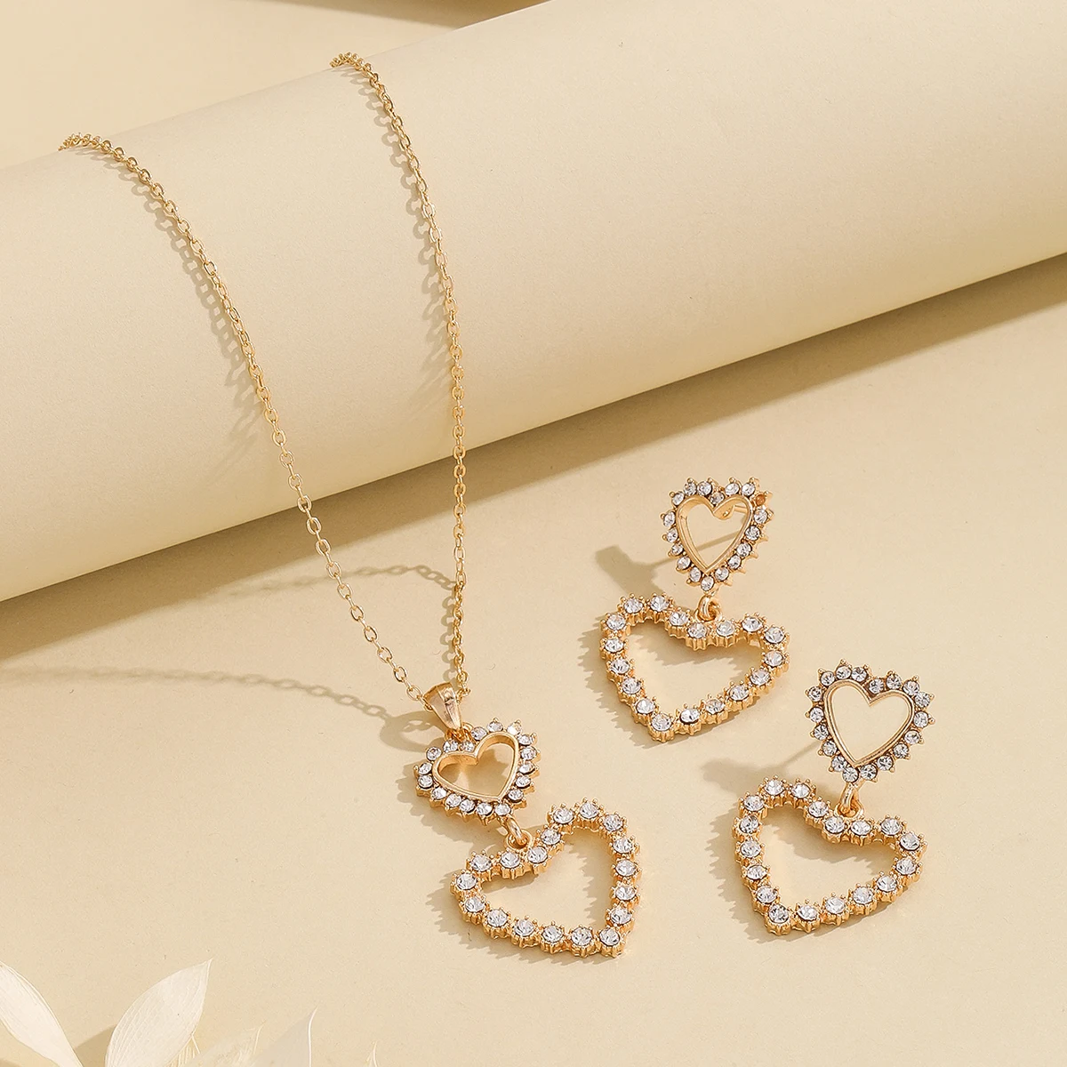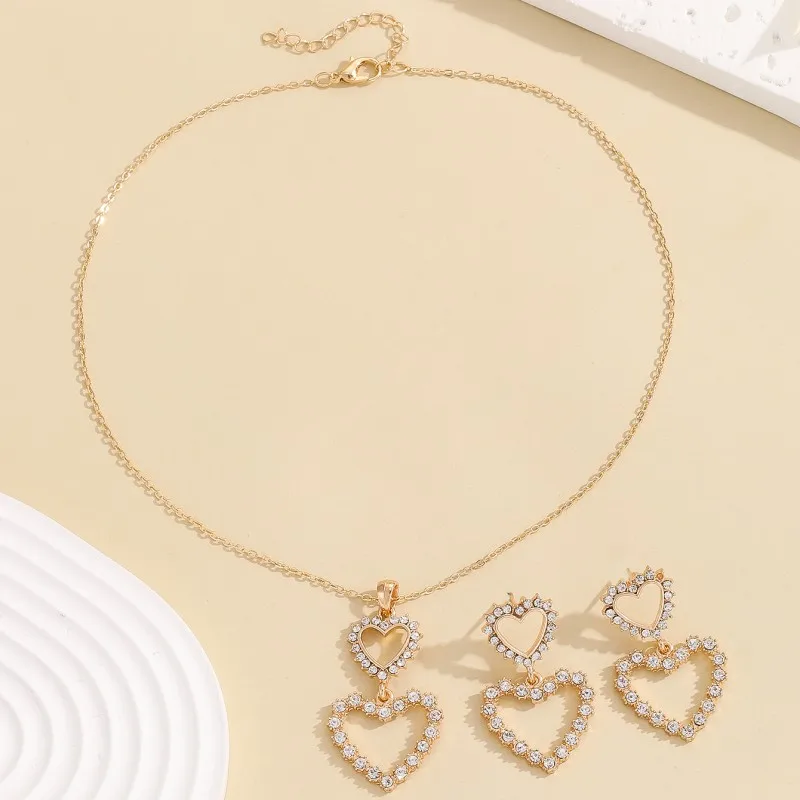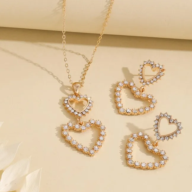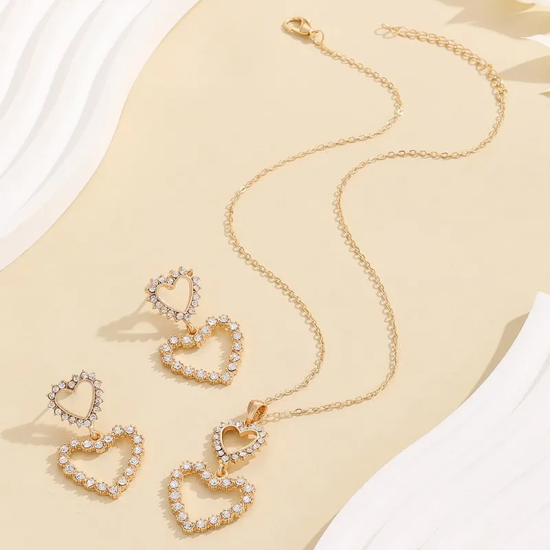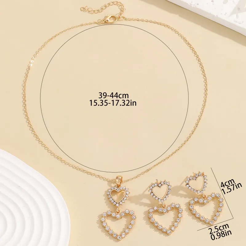 ❤️ What it is - Discover our stunning Custom Minimalist Glamour Zirconia Jewelry Set featuring an exquisite 18k gold plated heart pendant necklace and matching earrings, perfect for adding elegance to any outfit. This dazzling set is designed with intricate diamond pave settings to create a timeless look that’s both chic and romantic.✨ Why you need it - Perfect for a variety of occasions, this jewelry set:- Elevates any ensemble, making it ideal for both casual and formal events.- Offers an exclusive touch with its unique heart design, symbolizing love and affection. - Serves as an excellent gift for a loved one or a treat for yourself, adding a touch of glamour to your collection.🌟 Why you love it - Customers love this jewelry set because:- Its premium quality construction ensures durability and long-lasting wear.- It boasts a unique minimalist style that fits effortlessly into any wardrobe.- The zirconia stones are beautifully crafted, providing a sparkling appearance without the luxury price tag.How to use it: Wear the necklace and earrings together for a complete look, or mix and match with other jewelry for a personalized style. The pendant can also be layered with other chains for added dimension.🎁 Satisfaction Guaranteed: Elevate your jewelry game today with this exclusive set! Act fast as quantities are limited—make it yours and add a touch of glamour to your life!