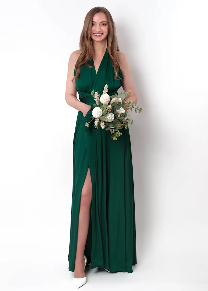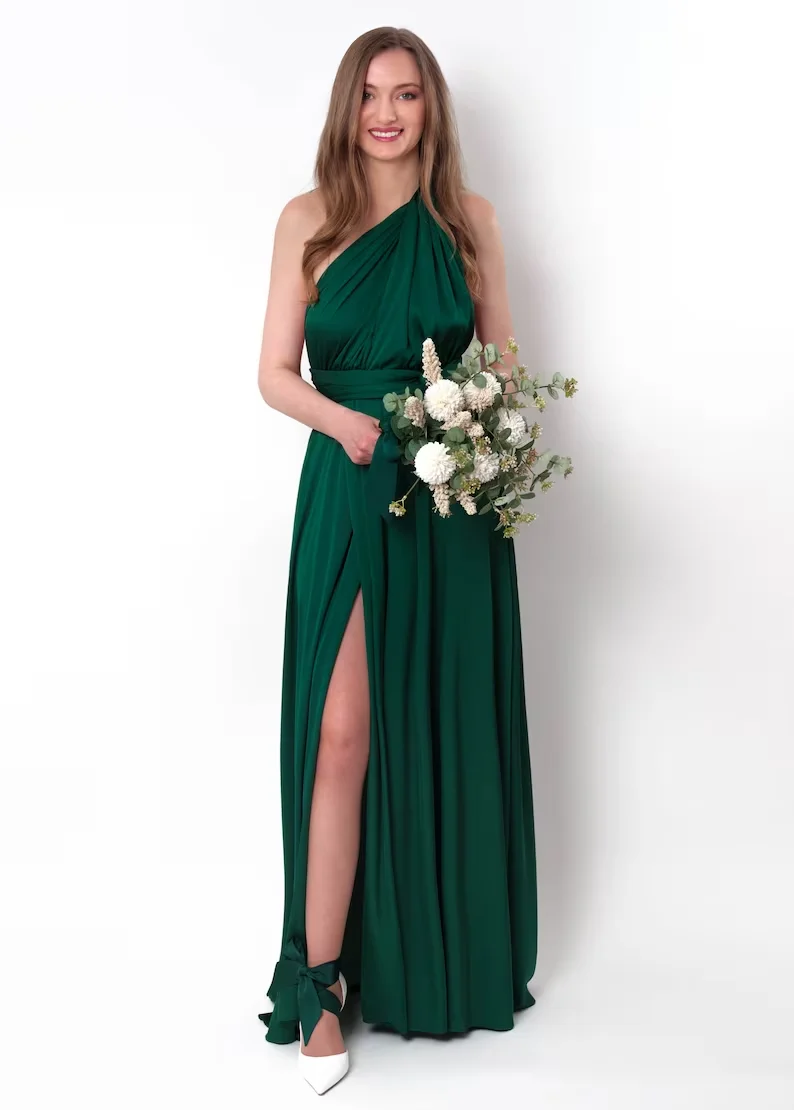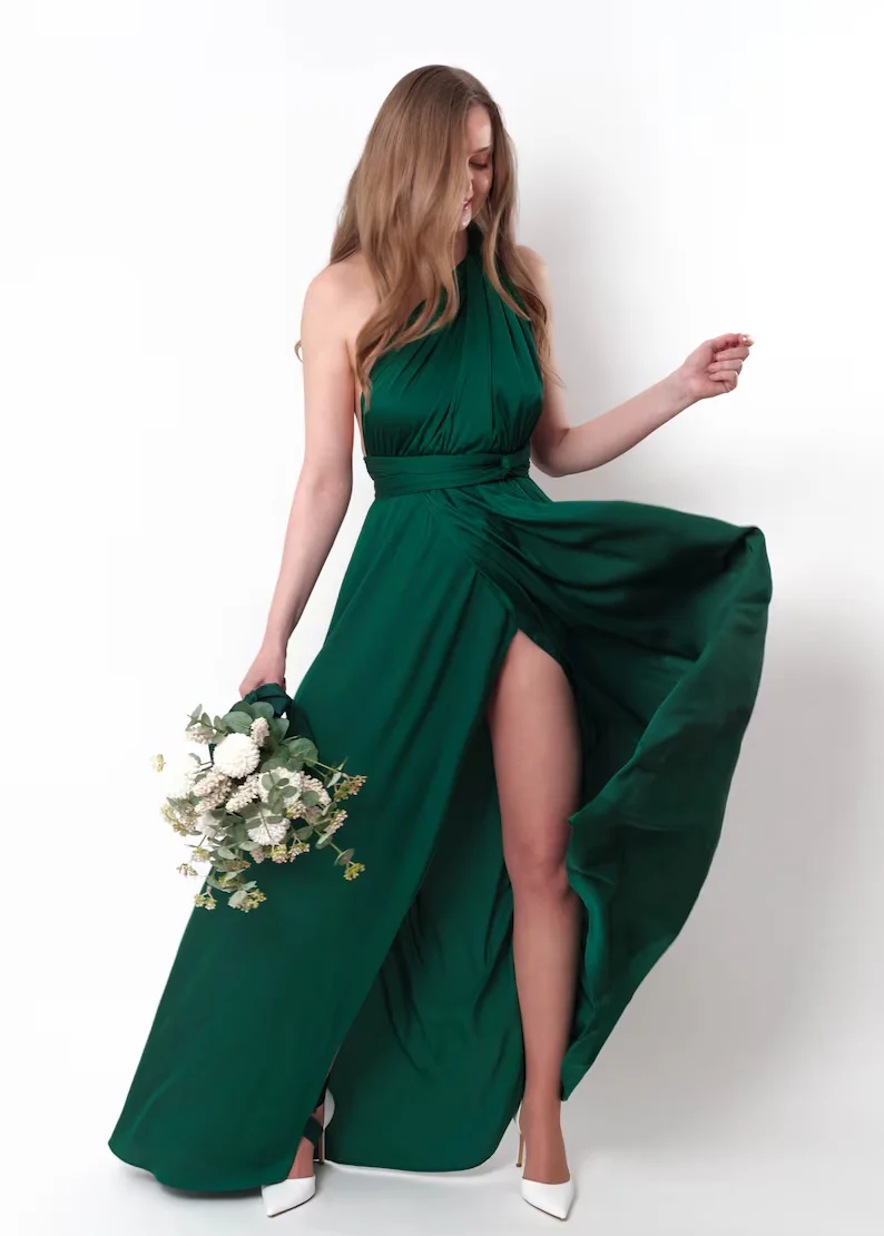 🌟 Elevate Your Special Day! – Introducing our stunning Dark Green Infinity Multiway Bridesmaid Dress, perfect for weddings, proms, and formal occasions. This versatile maxi dress can be styled in countless ways to create a unique look for each bridesmaid, ensuring everyone feels beautiful and confident. 💖 Why you’ll love it: - Customizable styles to flatter every body shape. - Elegant dark green hue complements any wedding theme. - Comfortable and breathable fabric for all-day wear. - Perfect for mixing and matching with other dresses in your bridal party. ✨ Why do you need it? - Eliminate uniformity issues with this multiway design; each bridesmaid can showcase their individual style while still looking cohesive. - Excellent for any formal event, allowing for easy transitions from ceremony to reception. - Avoid the stress of finding a dress everyone loves – let your bridesmaids choose their preferred style! 🛍️ How to wear it: It’s simple! Follow the instruction guide included with each dress to wrap and style the fabric in a way that fits your personal style. Perfect for creating endless looks that transition smoothly from day to night. ✅ Customer Satisfaction Guaranteed: We strive for a five-star experience! If you have any issues with your dress, please reach out to us directly for support. Dress up in style and confidence at your next event – ORDER NOW to secure this exclusive design!