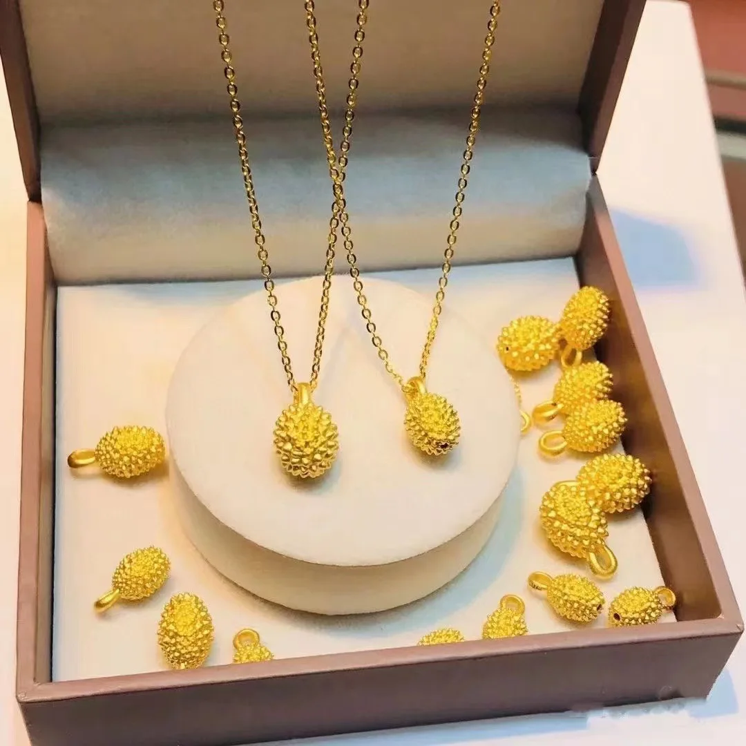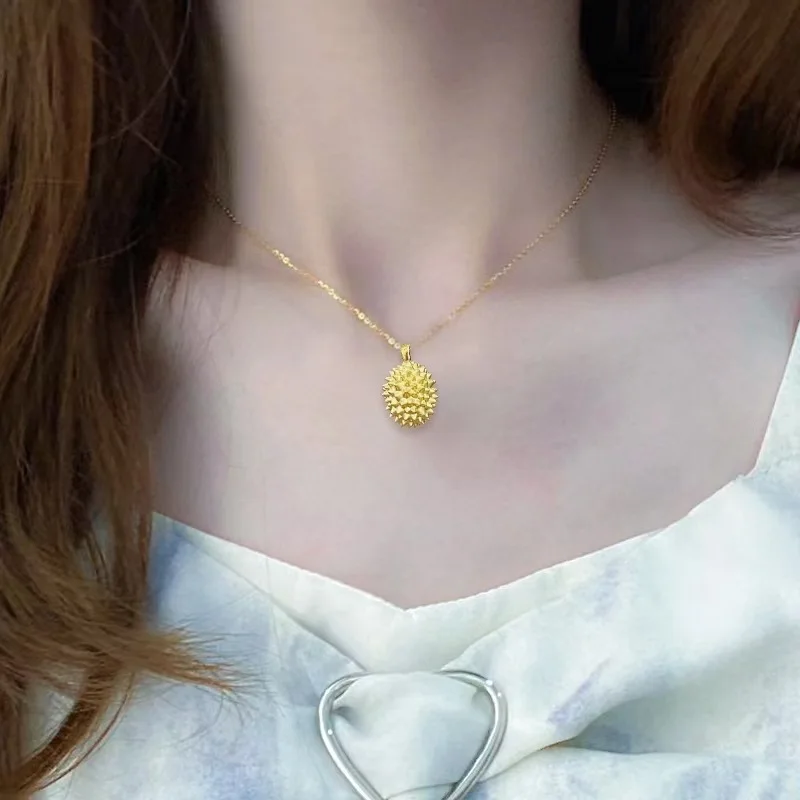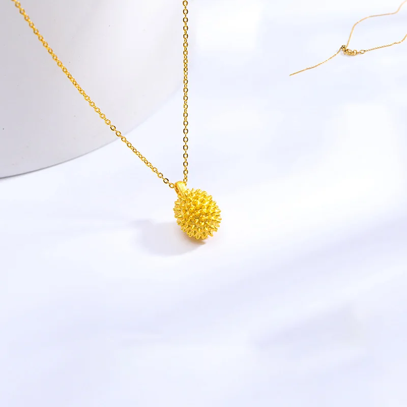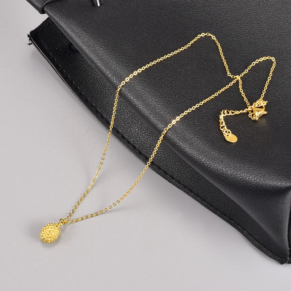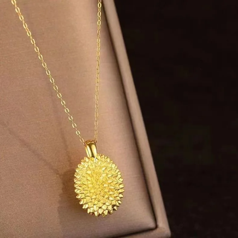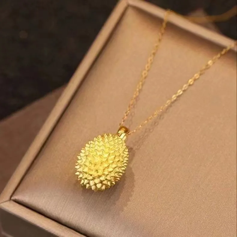 Gold Durian Fruit Pendant Necklace